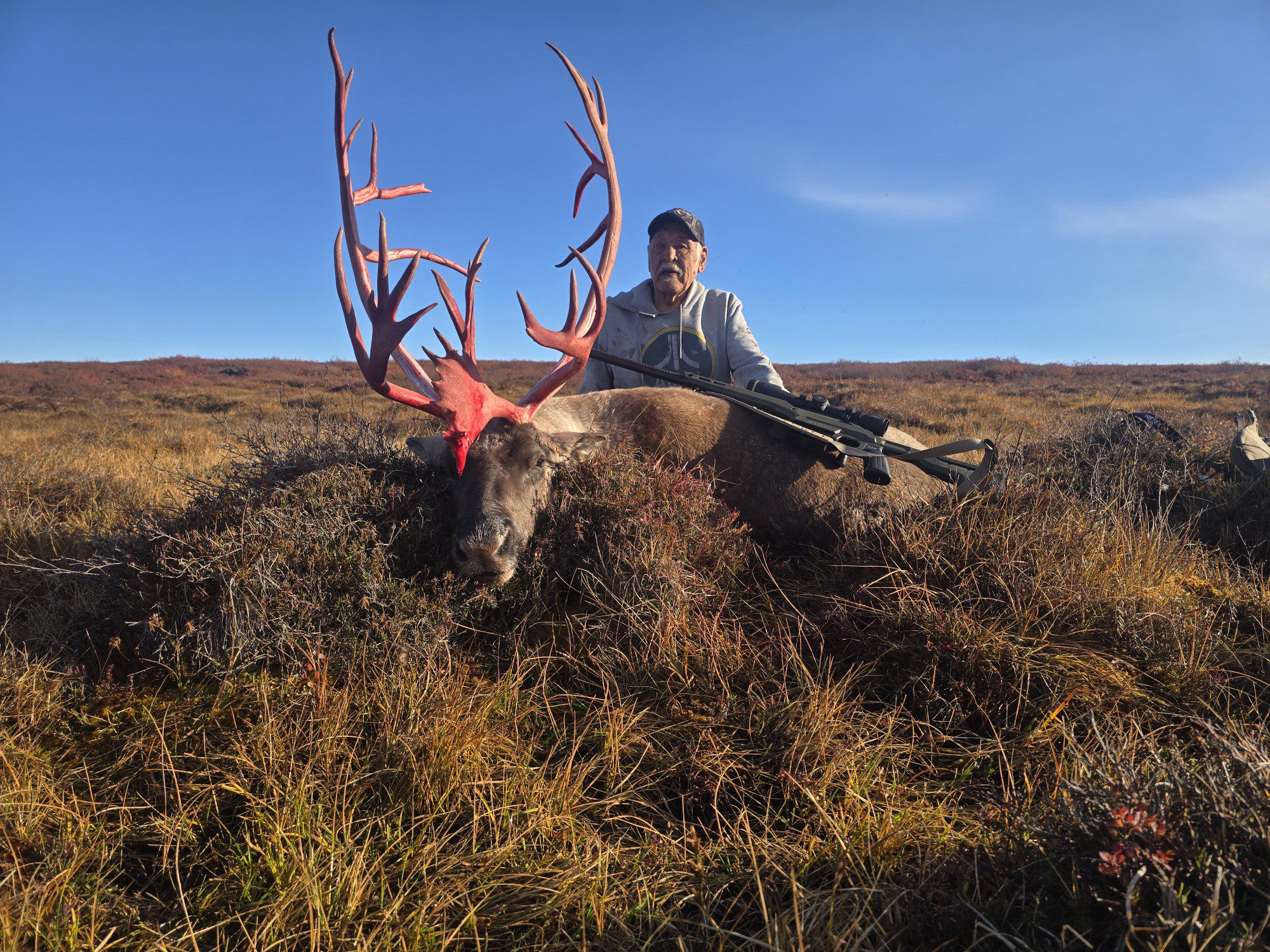For years now, we have enjoyed nearly 100% hunter success with both archery tackle and rifle hunters alike. Most rifle shots are under 300 yards. Archery hunters should take time to practice in windy conditions as much as possible before coming on the hunt. Most shots taken at caribou are more than 50 yards given the open nature of the terrain.