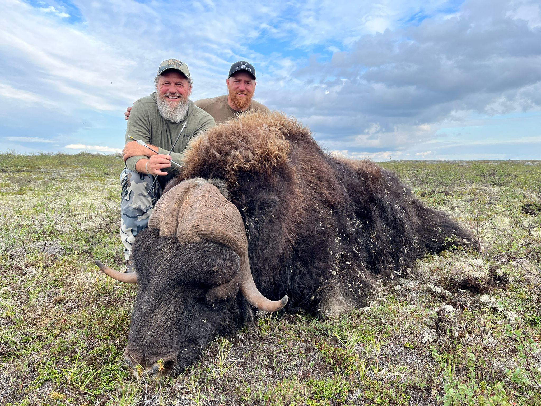 For years now in both locations, we have enjoyed nearly 100% hunter success with both archery tackle and rifle hunters alike. Most rifle shots are under 300 yards. Archery hunters should take time to practice in windy conditions as much as possible before coming on the hunt. The majority of shots taken at muskox are more than 40 yards given the open nature of the terrain.