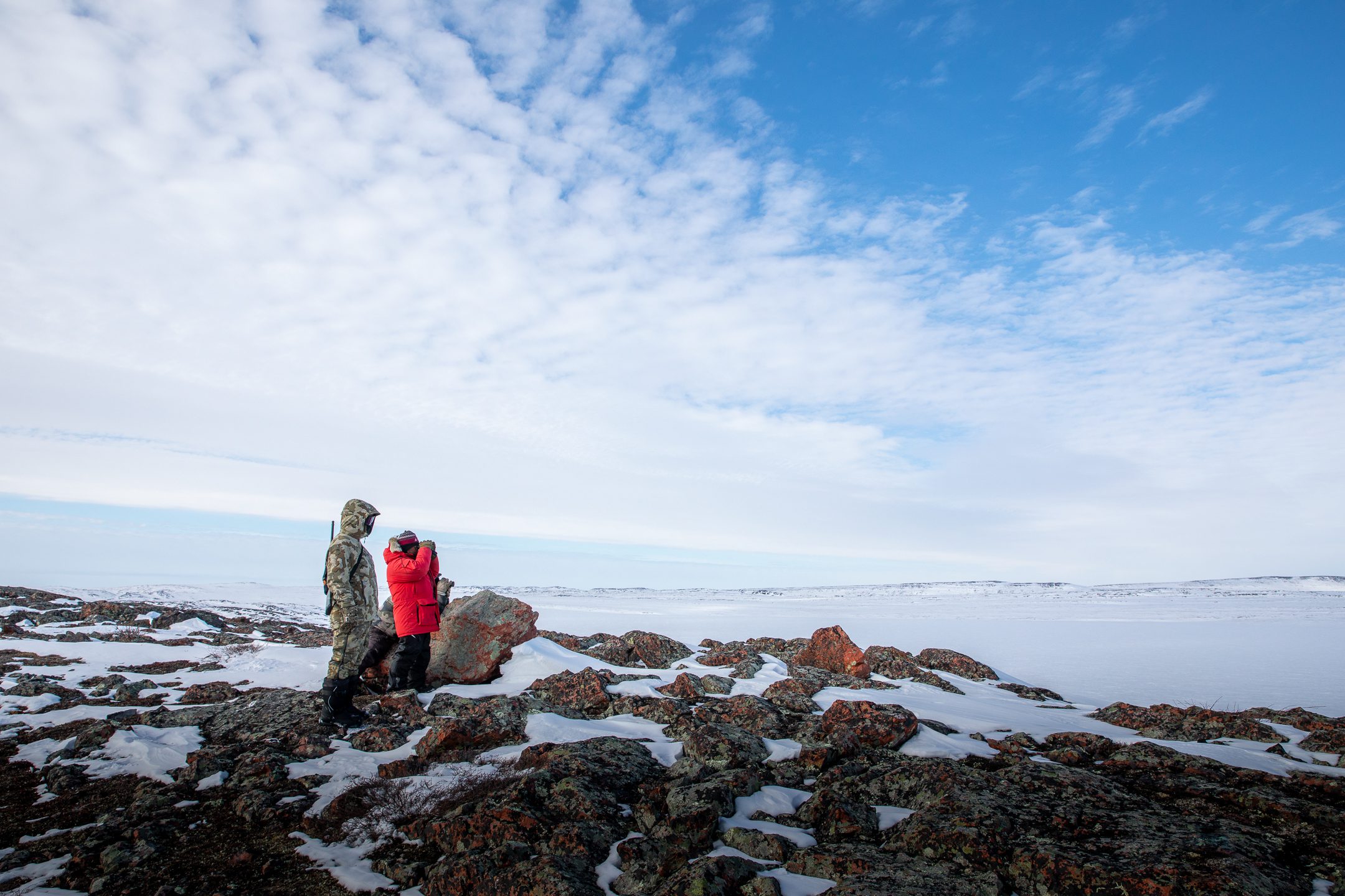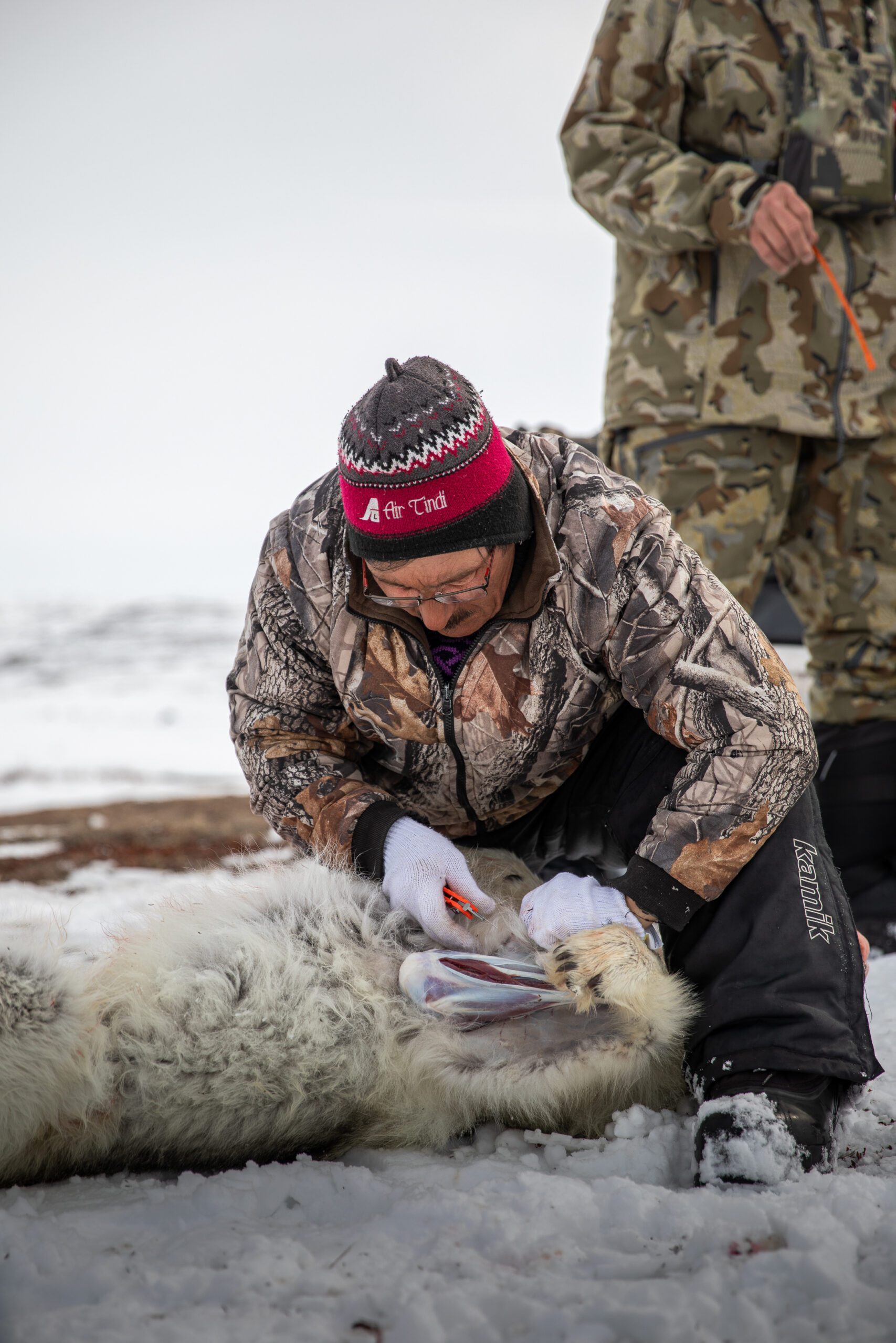 The hunt starts off in Cambridge Bay and we soon start travelling down to Bathurst Inlet to hunt around there. It is a nearly 200-mile-long snowmobile ride so it’s not for the faint of heart. This hunt is high on adventure!